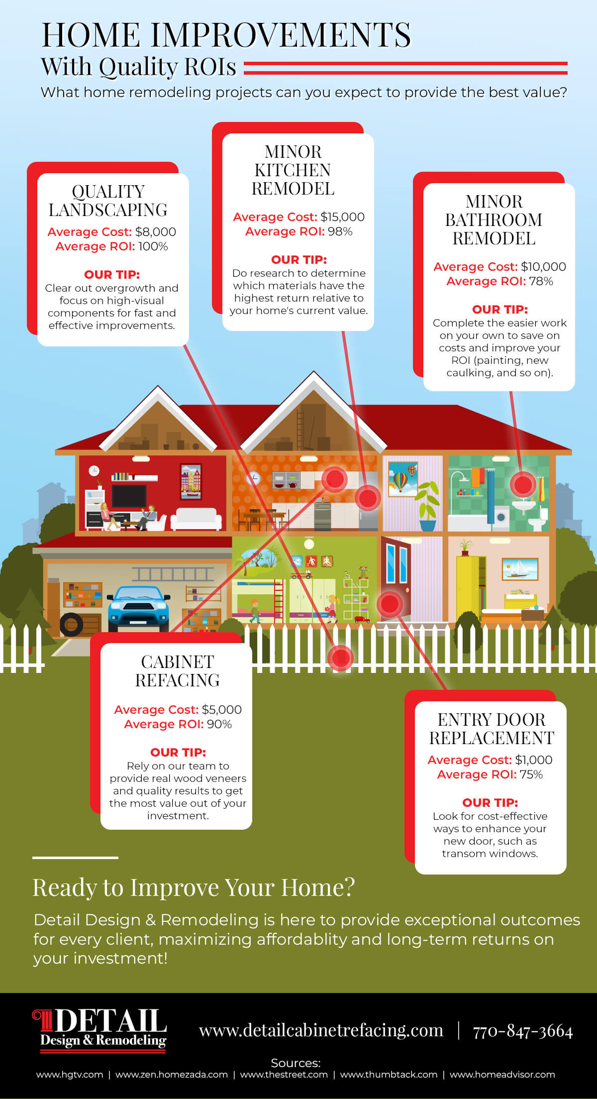 Detail Design & Remodeling is here to serve as your home improvement contractors for any project. While we specialize in cabinet refacing services, our team has the skills and experience to take on any home remodeling need in the Atlanta area. If you’re planning on home renovations, it pays to work with a home remodeling team who takes the time to learn about your vision and goals and develops a plan to maximize the beauty and affordability of the project.